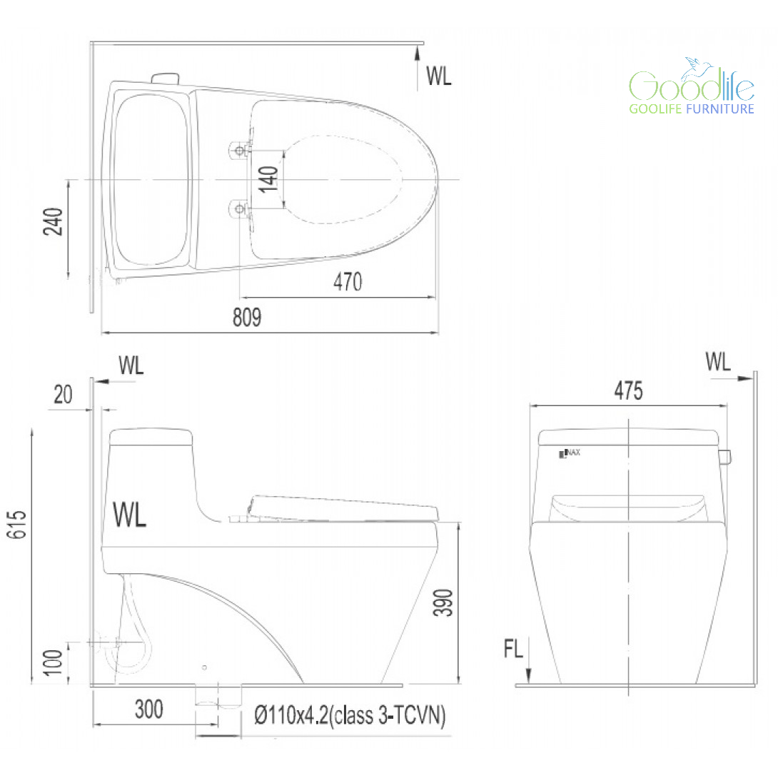 Kích thước bồn cầu Inax