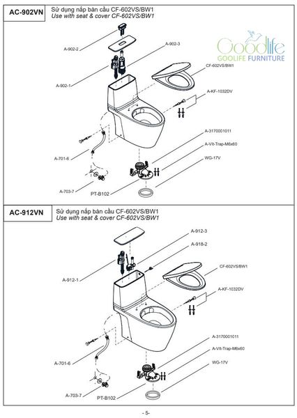 Thông số kỹ thuật bồn cầu nắp điện tử INAX AC-912+CW-KA22AVN
