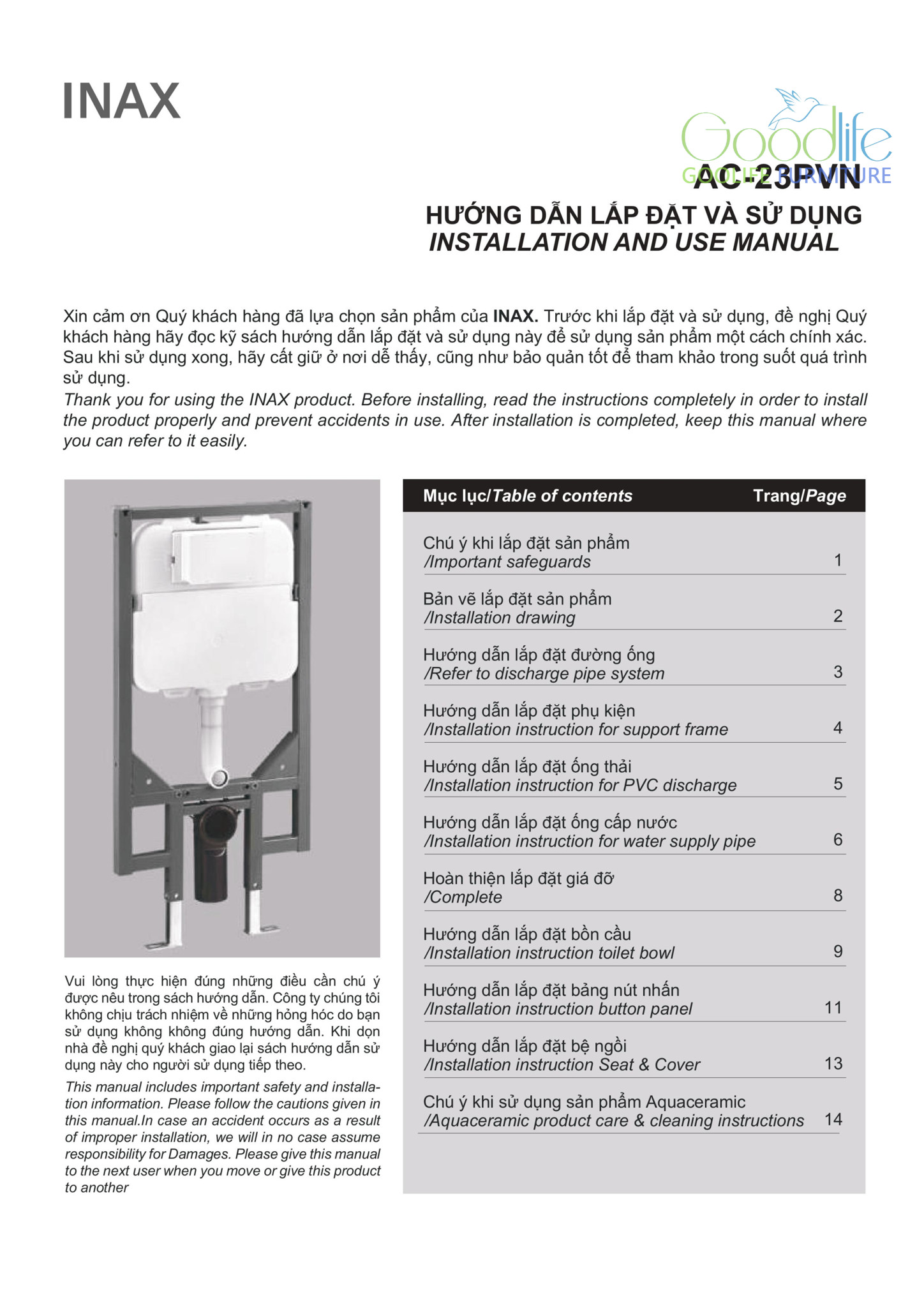 Tại sao nên chọn INAX AC-22PVN tại Nội thất Goodlife?