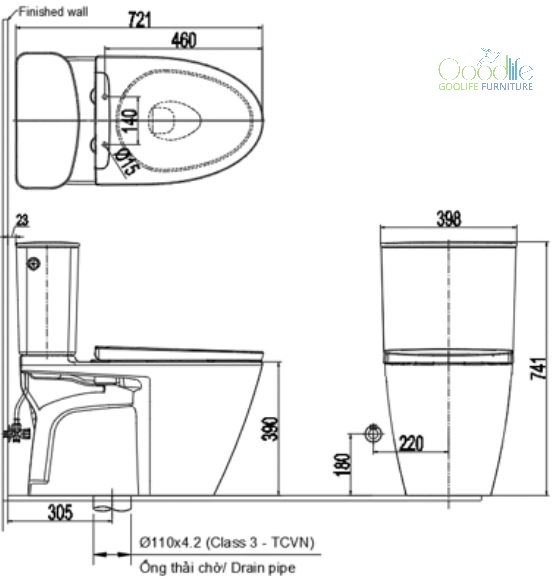 Tiết kiệm nước xả 2 cấp thông minh Linh hoạt chọn xả 3.0L (tiểu) hoặc 4.5L (đại), giúp giảm bớt kể lượng nước tiêu thụ mỗi ngày, vừa tiết kiệm chi phí vừa thân thiện với môi trường.