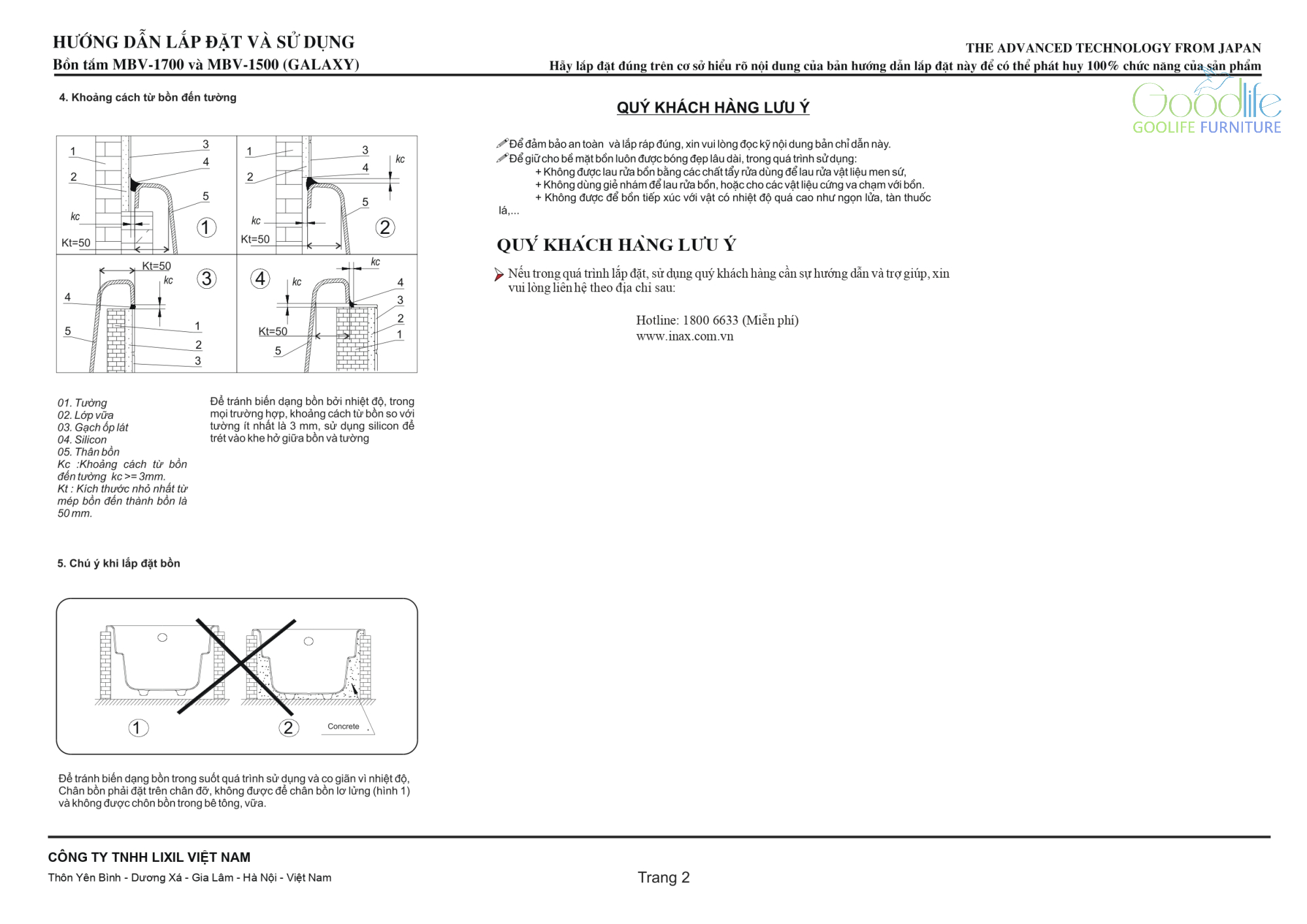 Tại sao nên chọn bồn tắm INAX MBV-1500 tại Goodlife Furniture?