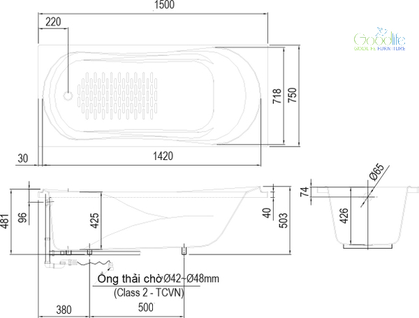 Kích thước vừa vặn, phù hợp không gian trung bình Dễ dàng bố trí trong phòng tắm có diện tích hạn chế nhưng vẫn đảm bảo không gian ngâm mình thoải mái cho người lớn.