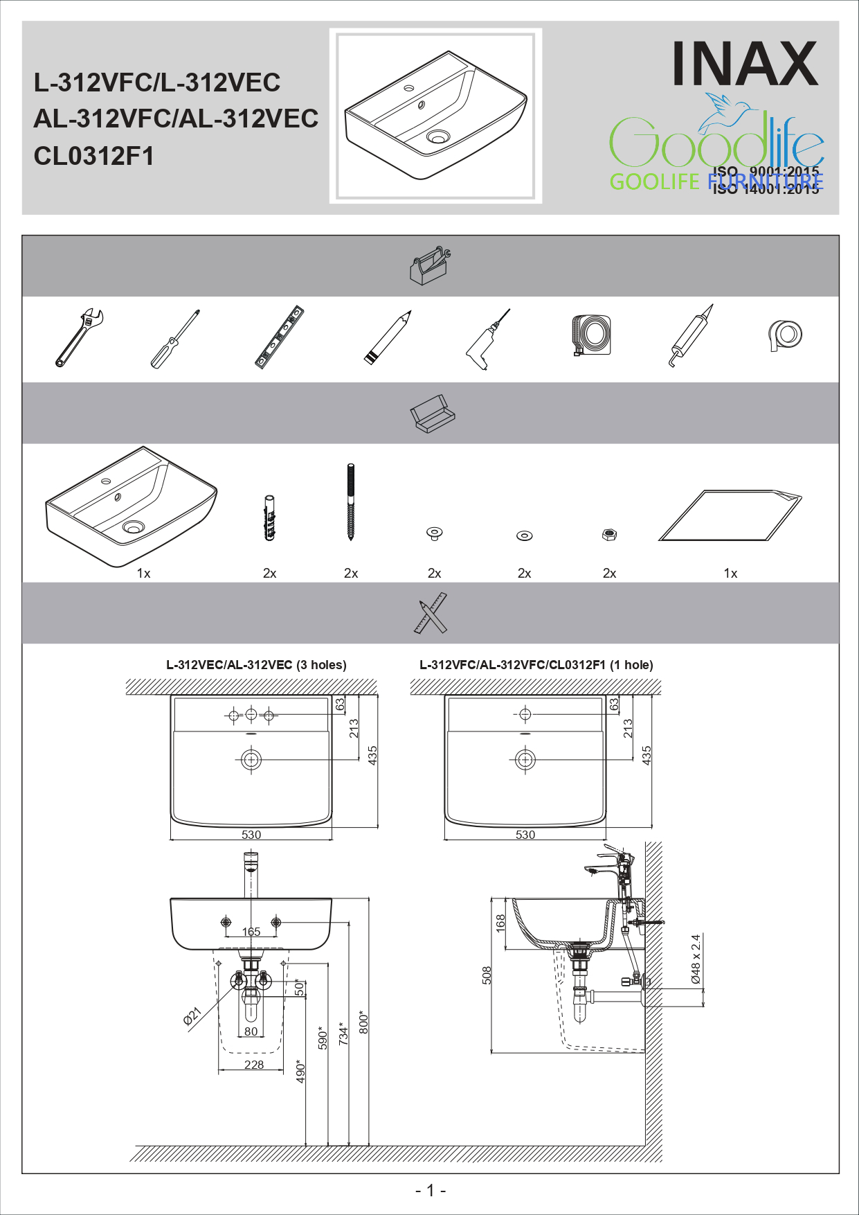 L-312VFC: 1 lỗ. L-312VEC: 3 lỗ
