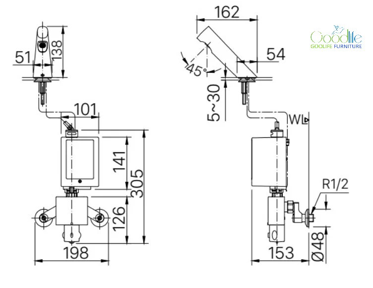 Thi công & lắp đặt đơn giản – Thiết kế tiêu chuẩn cho phép lắp đặt dễ dàng trên các lavabo phổ biến mà không cần kỹ thuật phức tạp.