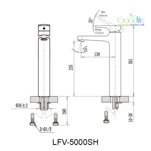 Dễ lắp đặt – Thiết kế chuẩn phù hợp lavabo 1 lỗ hoặc bàn, thi công đơn giản, thuận tiện cho mọi công trình.
