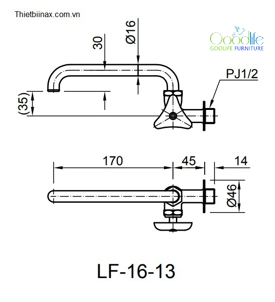 Thông Số Kỹ Thuật Vòi Lavabo Lạnh Gắn Tường INAX LF-16-13