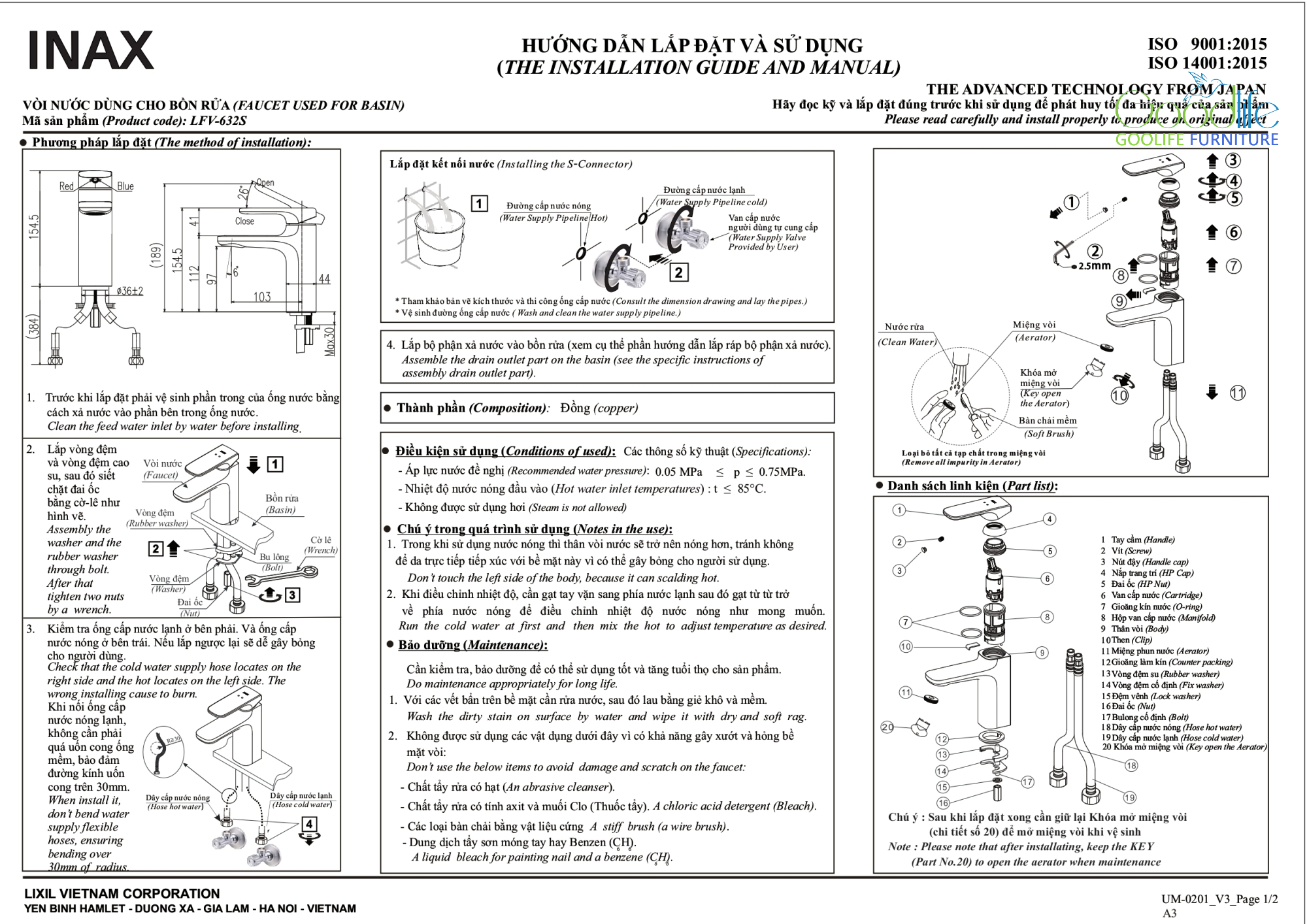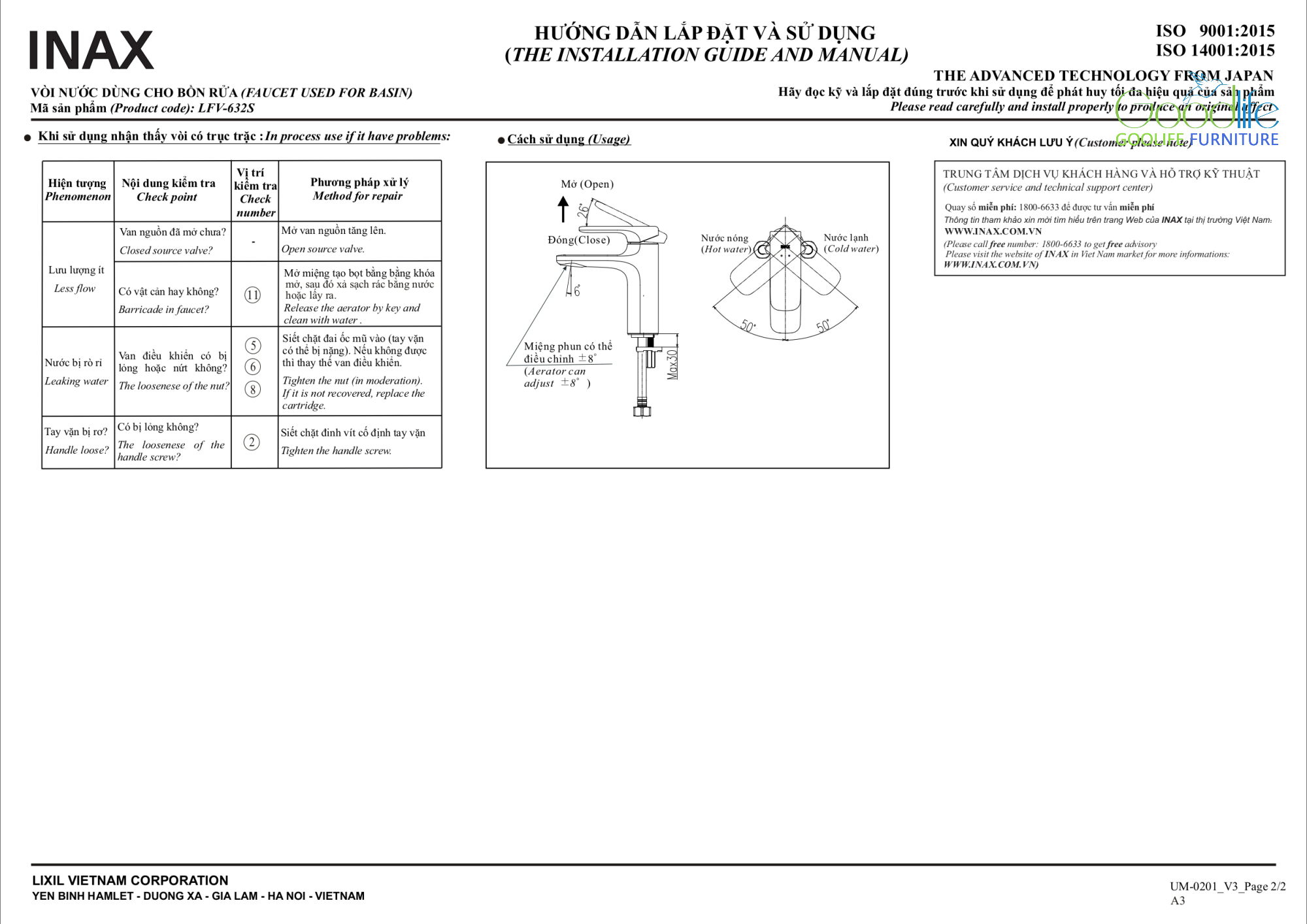 Vòi lavabo nóng lạnh INAX LFV-632S chính là lựa chọn hoàn hảo để nâng cấp phòng tắm với phụ kiện bền đẹp, tiện lợi và đẳng cấp.